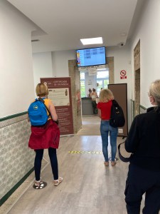 Im Hotel muss ich mich aber beeilen, wieder zurück zum Pilgerbüro zu kommen. Dort wurde bereits die Nummer 190 aufgerufen. Nach Vorzeigen aller meiner Online-, Papier- und Passformulare darf ich mich in eine Schlange einreihen, um nach schönsten Amtssystem Nummer für Nummer vorzurücken