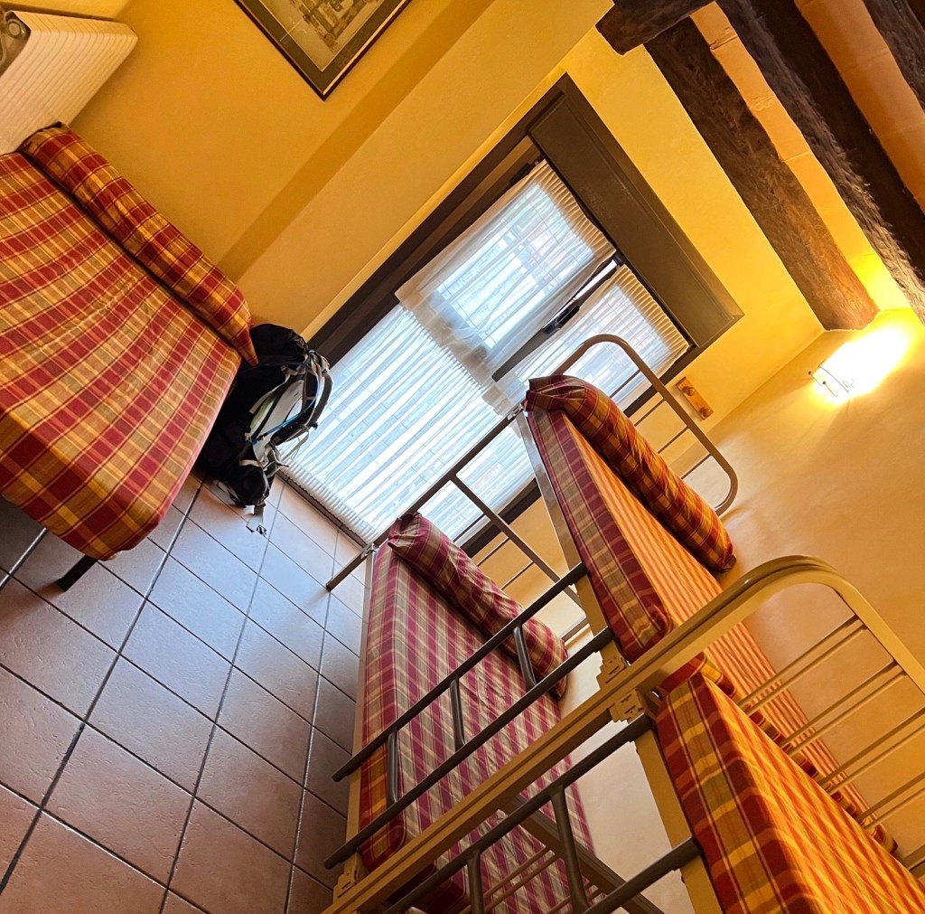 Dennoch sollte ich ihm ausgesprochen dankbar sein. Mit dem Hinweis auf mein hohes Alter und auf Schwindelgefühle in der Höhe, mit denen ich nicht in einem Hochbett oben schlafen könne, sowie den verstohlenen Altmänner-mehrmals-in-der-Nacht-auf-Toilette-Augenzwinkern führt er mich in eine Kammer mit zwei Hochbetten und einem Einzelbett. Ich könne mir ein Bett aussuchen. Keine Frage, ich nehme das Einzelbett. Und da Ventosa doch ein wenig am Rande des Weges liegt, kommt auch die ganze Nacht kein weiterer Pilger in das Dormitio. Wer hätte sich auch in dem einsetzenden Regen hierher verirren sollen? Gut für mich, ich kann jetzt sagen, ich habe im Dormitio geschlafen. Und hatte trotzdem ein Einzelzimmer. Für 14 Euro! Also für die eine Erzählung ist damit klar, ich war auch dabei. Für die andere Erzählung, ich bin wahrscheinlich der einzige Pilger auf dem ganzen Jakobsweg, der in einem Schlafsaal geschlafen hat, und es wie ein Einzelzimmer genießen durfte. Aber das ist ja nicht die letzte Herberge. Und was ist nun mit der Überschrift und der schrecklichen Nacht im Schlafsaal? Ist so ein Internet-Journalisten-Ding. Lernst man heute: Oben Catcher in the Rye, unten im Text dann nur ein Würmchen. Sorry.