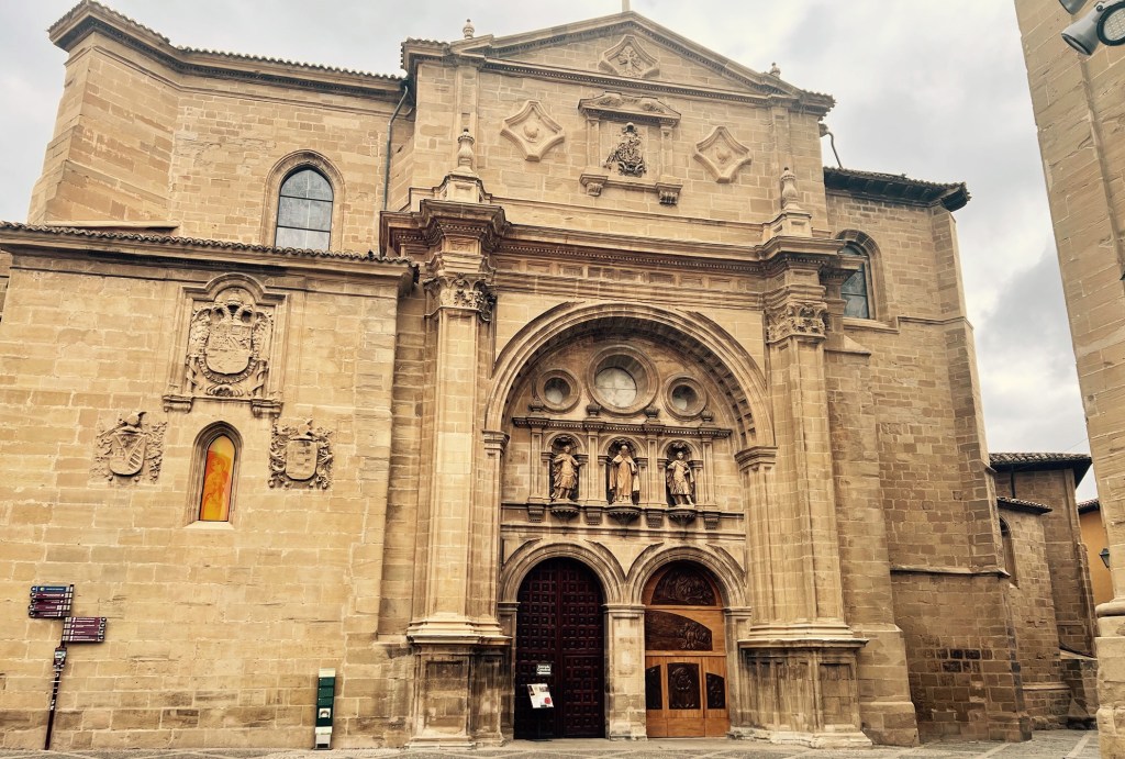 Santo Domingo de la Calzada ist nach dem heiligen Domingo benannt, der hier im Mittelalter ein Hospiz für die Armen errichtete und sich ihrer annahm. Die romanisch, gotische Kathedrale auf dem Domplatz ist ihm gewidmet. Aber wenn man die malerische Altstadt betritt, kommt man zuerst an der Monasterio Cisterciense aus dem 17. Jahrhundert vorüber, der Pilgerherberge des Zisterzienserklosters. HaPe Kerkeling behauptet in seinem bekannten Buch aus dem Jahr 2001, dass er hier einmal von vier Uhr bis sechs Uhr morgens in einer sehr unerquicklichen Situation eingeschlossen gewesen sei. Weil er frühmorgens nach Stunden von Schlaflosigkeit, geschuldet dem Schnarchen anderer und laufender Toilettenspülung, aus der Klosterherberge mit ihren fünf Schlafsälen zu je neun Betten flüchten wollte, packte er voller Hast seine Sachen und nichts wie raus. Laut schlug die schwere Klosterpforte hinter ihm ins Schloss. Wo er nur zwei Meter vor sich ein festverschlossenes Gitter vorfand. Ja, es ist halt ein Nonnenkloster. Doppelter Verschluss von innen – und von außen. Dort saß der sonst stets zu Scherzen aufgelegte Pilger zwei Stunden in der Kälte gefangen. Bis punkt sechs Uhr die Dienst-Nonne das schwere Gitter öffnete. So beschreibt er es zumindest. Eine Geschichte, die sich bei Prüfung der näheren Umstände durchaus so zugetragen haben könnte. Wie ein Foto zeigt. Hundekalt ist es jedenfalls heute Morgen hier auch.