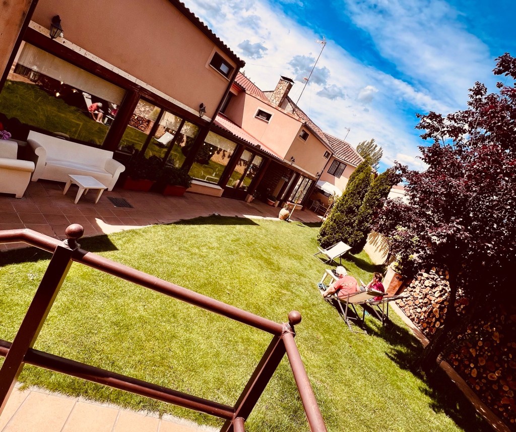 Gestern Abend im LaMorena in Ledigos saß jedenfalls wieder die gesamte Gemeinde zusammen. Pilger, denen ich schon seit Tagen immer wieder begegne. Der Vater mit dem Sohn aus Mexico, die Tochter mit ihrer Mutter aus Texas, eine Pilgerin aus Schottland, die es in den Tagen nach dem Spiel Deutschland gegen Schottland, besonders schwer hat, und eine Menge junger Leute. Alles Futter für den Dormitory. Ich dagegen konnte in mein kuscheliges, winziges, aber sehr sauberes Einzelzimmer verschwinden und war bis zum Pilgermenü nicht mehr gesehen. Der Vater mit dem Sohn auch. Die Tochter mit ihrer sehr alten Mutter ebenso. Diese Herberge hat im übrigen einen wunderschönen kleinen Garten, eine Waschkabine mit Waschmaschine und Trockner, und im Zimmer waren nicht nur Banane, Orange und Birne sowie Wasser angerichtet, sondern es lag da auch noch eine kleine Tube mit Fußcreme auf dem Bett. Da hätte ich ja gerne mal Mäuschen gespielt und nachgeschaut, ob auf den Stockbetten im Dorm auch auf jedem Kissen eine Tube Fußcreme wartete? Aber dieser Luxus hat natürlich auch seinen Preis. 57 € mit Frühstück. Wobei du das Frühstück hier in Spanien in der Regel vernachlässigen kannst. Einen Kaffee oder Espresso und ein Croissant. Da greift selbst ein Zuckerfeind wie ich gerne mal zum Tütchen weißen Abhängigmacher für den Espresso, um das Preis-Leistungs-Verhältnis zu verbessern. Heute Abend im Hotel Castillo El Burgo werden das übrigens nur 42 Euro sein. Aber das hat auch seinen Grund. Dazu kommen wir noch.