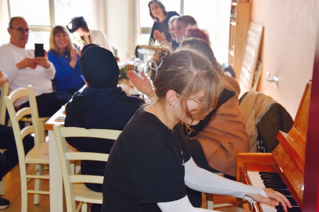 Es ist Freitagvormittag Ende Januar 2025 im Beit Uri. Die Vorbereitungen für den Sabbat laufen. Im Café von Beit Uri in Afula wird um zehn Uhr morgens ein Geburtstag gefeiert. Martha soll auf dem Klavier spielen, eines der Instrumente, die sie beherrscht. Langsam treffen die Gäste in dem kleinen Café des Behindertendorfes ein. Neun Häuser gibt es hier, in denen 120 bis 130 Residents wohnen, also schlicht Bewohner. Martha arbeitet in einem der Häuser, betreut die Menschen dort, macht Musik mit ihnen. Andere töpfern, gärtnern, weben oder pflegen Tiere. „Sie macht einen harten Job“, sagt Ruth aus dem benachbarten Sabra House, in dem man sich der Erinnerung an den Holocaust und den Überlebenden widmet. Ruth muss es wissen, sie ist dreimal so alt wie Martha, die hier im letzten Mai erst ihren 19. Geburtstag feierte.