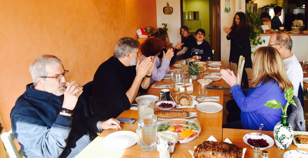 In „Beit Uri“ wird an diesem Freitag vor dem Sabbat Asaf, der Sohn von Henia Elior, gefeiert. Heute bleibt der Krieg mal außen vor. Asaf wohnt bereits 24 Jahre in „Uris Haus“. Die Einrichtung für Menschen, die eine besondere Hilfe benötigen, wurde in den 30er Jahren von der Tschechin Devora Schick gegründet. Sie floh damals mit ihrem behinderten Sohn Uri nach Palästina, um ihn vor der Gewalt der Nazis zu bewahren. Solche Geschichten begegnen einem hier auf Schritt und Tritt. Nachdem ihr Sohn gestorben war, widmete Devora Schick ihr Leben der Pflege und der Versorgung von Kindern mit Behinderung. Nun trägt dieses Haus den Namen ihres Sohnes. Sie selbst lebte bis zu ihrem Tod 2002 hier.