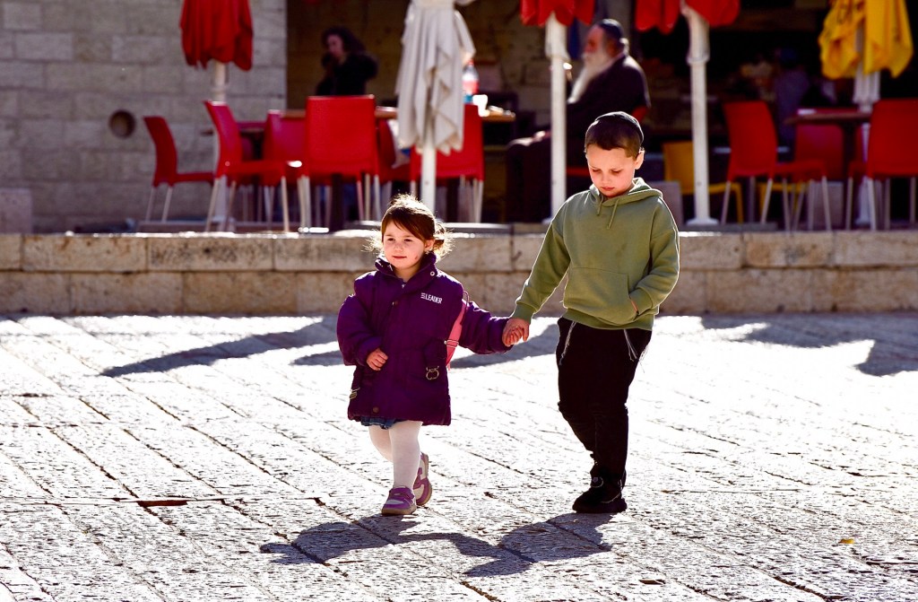 Am Mittag, wenn die Schule in Jerusalem aus ist, füllt sich der Ha-Kurba Square an der historischen Hurva Synagoge in der historischen Altdtadt mit Kindern. Den Ranzen geschultert. Junge Mütter schieben Kinderwagen. Geschäftige Väter halten die Sprösslinge an der einen, das Handy in der anderen Hand. Die sonst allgegenwärtigen alten Männer mit den weißen Bärten und den orthodoxen Schläfenlocken sind in dem Gewimmel kaum noch zu erkennen. Höchstens, dass ein paar steife schwarze Hüte gleich schaukelnden Nachen die Oberfläche auf den Wellen eines Meeres der heiteren Geselligkeit durchpflügen.