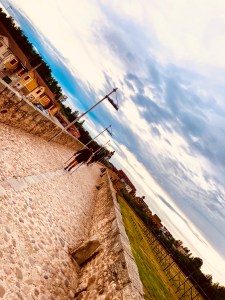 In Ponferrada geht es quer durch eine Altstadt mit einer Burg der Templer und der Kirche San Andrés. Einfach wunderschön. Mittlerweile befinde ich mich inzwischen grüner Weinberge und gehe auf das fruchtbare Pieros zu. Vor mir trödelt, aber nicht humpelt (gleich wichtig), eine Frau in kurzer Hose, Sportoberteil und Nivea-Tüte den Wanderweg entlang. Hm, Leute gibt es. Aber warum nicht.