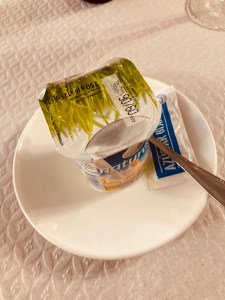 Gott hilf mir, oder wer auch immer. Oder meine Endorphine. Frühstücken brauche ich unterwegs schon einmal nicht. Das Frühstück in der Herberge war wunderbar und auch gestern Abend im Dorf gab es eine richtiges Pilgermal. Ein Drei-Gänge-Menü, von Hühnersuppe, Fisch mit Fritten und hinterher einen Joghurt im Becher, direkt aus der Kaufhalle. Zum Pilgermal gehört neben der Wahl der drei Gänge auch die Wahl des Getränkes, ein Wasser oder 0,5 Liter Rotwein, inklusive in den 12 Euro. Da braucht es bei der Entscheidung keinen Beistand von Oben. In der Kneipe waren zehn Pilgertische besetzt und zehn Flaschen Rotwein standen drauf…