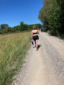 Also gebe ich Hackengas und spreche sie an. „Where is your Backpack?“ Nach einer kurzen Vorstellung „Liv from Danmark“, „Stefan from Germany“ beschließen wir ein Stück gemeinsam zu gehen. Ihre Beine sind k.o., deshalb habe sie ihre Rucksack nach Villafranca transportieren lassen. Wir fragen noch ein wenig hin und her, warum sie auf de Camino ist, und warum ich. „Think over the life“, passt irgendwie immer. Dann nach einer Stunde versprechen wir uns, uns am Abend wiederzusehen in Villafranca. Sie muss eine Pause machen. Die Beine. Wir sehen uns natürlich nicht wieder.