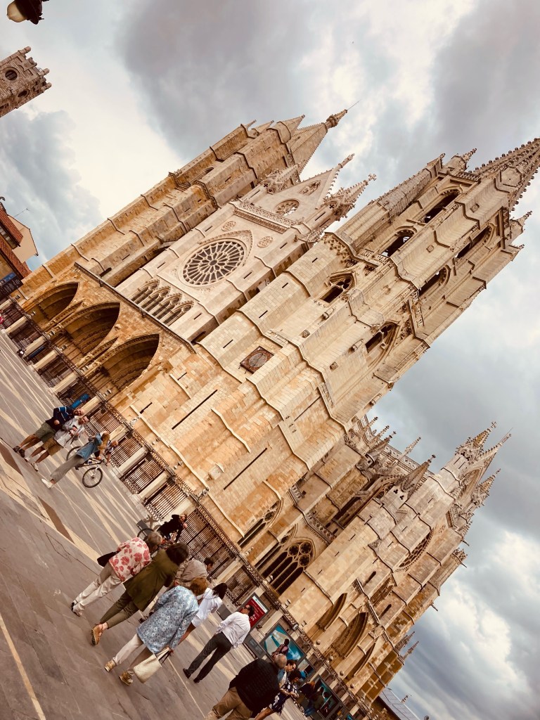 Gott sei Dank, oder muss es in diesem Fall besser Jacobus heißen?, fallen mit mir aus meiner kleinen Pension direkt am Mayor León zwei Japaner. Und die scheinen den Weg zu kennen. Zielstrebig stürzen sie voran und schon nach wenigen Minuten schalte ich mein Navi im Handy ab und folge ihnen. Richtig, die tragen auch die Jakobsmuschel am Rucksack, und tatsächlich kennen sie den Weg vorbei an der Basilika Isidoro. Quer durch das mittelalterliche Stadtzentrum begegnen wir immer mehr Pilgern. Tut mir leid, hier fehlt mir die gendergerechte Form. Katholische Kirche halt.