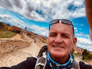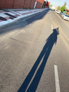 Aber wenigstens von Oben ist alles hell und freundlich. Da hat einer ein Auge auf die Pilger – immer noch keine Genderform. So bewundere ich und beobachte, wie tatsächlich im Laufe des Tages mein Schatten zur Seite wandert und dann aus meinem Blickfeld verschwindet und schließlich nach 34,52 (!) Kilometern in Hospital de Orbigo plötzlich hinter mir liegt.