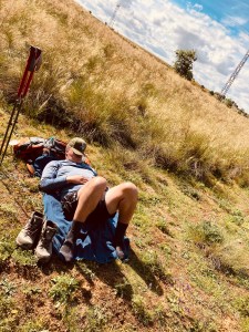 Ich habe es geschafft. Die erste Etappe liegt hinter mir. Und da ich das Beweisfotos für den Blog machen will, drehe ich mich herum und will nun meinen Schatten hinter mir fotografieren. Als ich dann auf mein Handy schaue, sieht aber gar nicht anders aus als am Morgen. Der Schatten liegt vor mir.